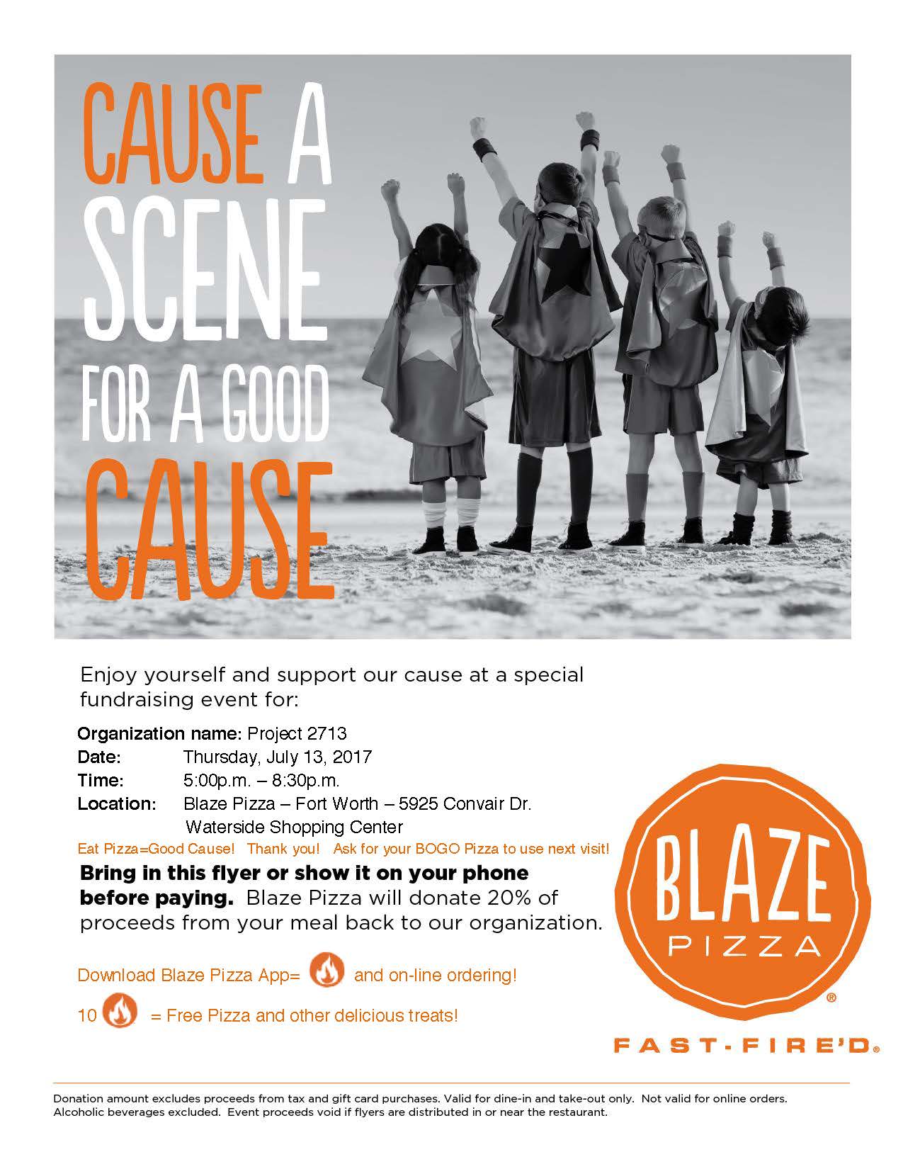 Let's raise some "dough" for Project 2713! Show this flyer on your phone or a printed copy to donate part of your meal back to Project 2713!